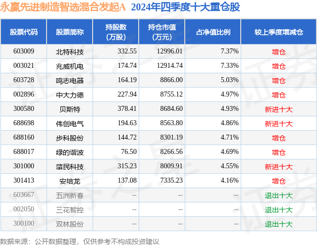 永赢先进制造智选混合发起A的前十大重仓股如下: