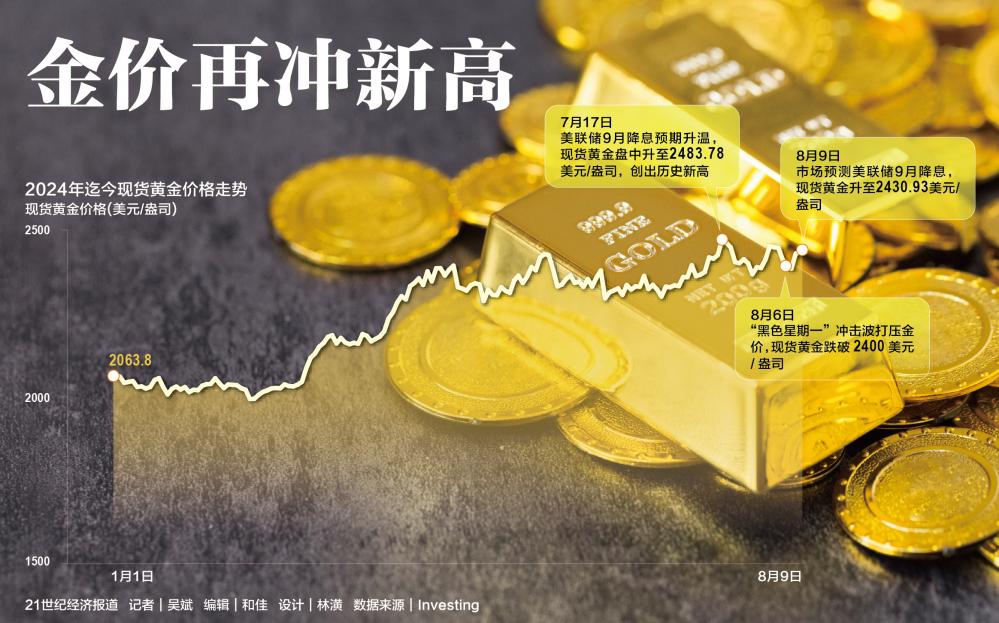2024年迄今,黄金价格整体震荡走高,多次刷新历史新高,如今再度有向历史纪录发起冲击之势。